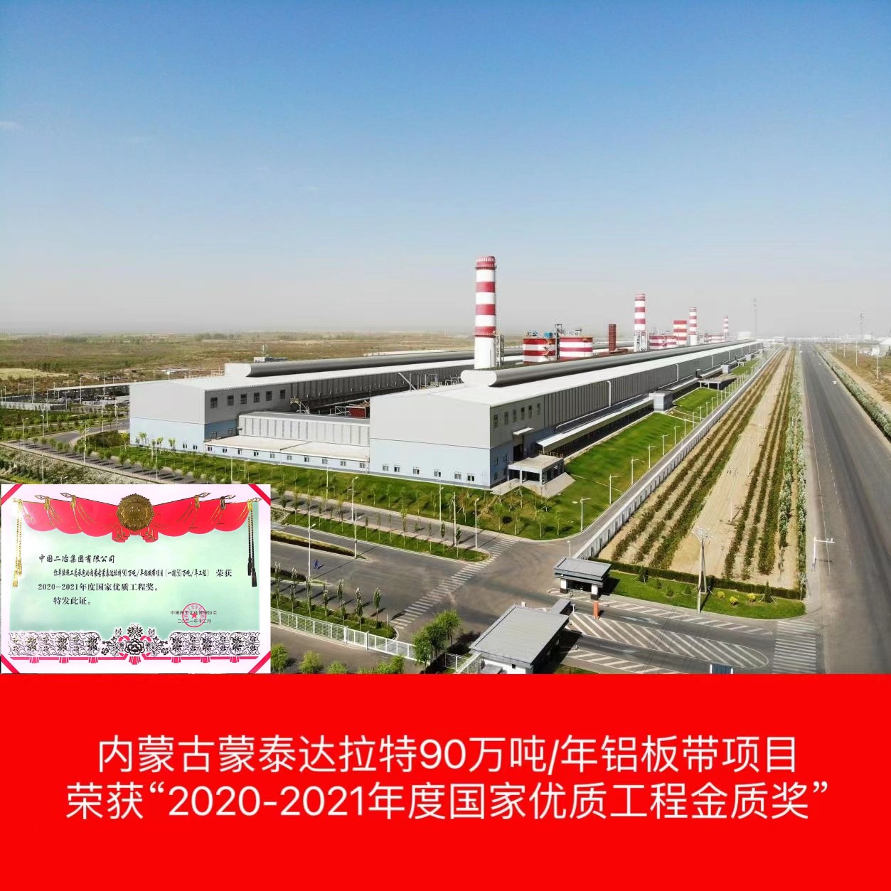 內(nèi)蒙古蒙泰達(dá)拉特90萬噸/年鋁板帶項目(一期50萬噸電解鋁工程)屬于內(nèi)蒙古積極響應(yīng)國家循環(huán)經(jīng)濟(jì)資源綜合利用示范項目,項目采用500KA預(yù)焙陽極鋁電解槽及配套的煙氣干法凈化技術(shù)及與之配套的供電整流、鑄造、電解煙氣凈化等工程。獲得“2020-2021年度國家優(yōu)質(zhì)工程金質(zhì)獎”。