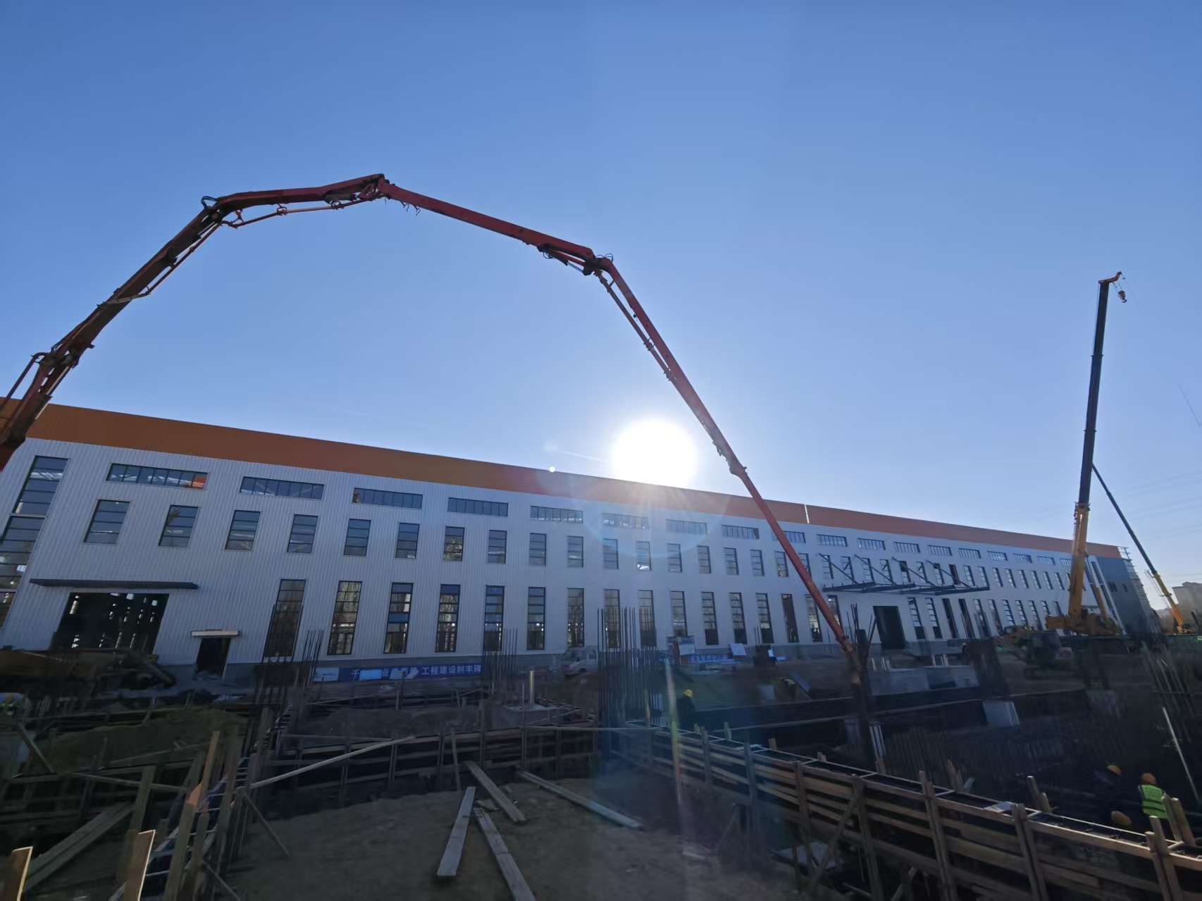 工程自10月10日進(jìn)入二次維護(hù)結(jié)構(gòu)封閉施工以來,項(xiàng)目部200余名建設(shè)者克服有效工期縮短、車間跨度大、包頭地區(qū)降雨頻繁等不利條件和施工難題,采取分區(qū)分軸流水作業(yè)+24小時輪班制施工方法,頂酷暑,斗強(qiáng)風(fēng)、冒嚴(yán)寒,掀起大干熱潮,僅僅用41天完成二次結(jié)構(gòu)砌筑、彩板及門窗安裝、大型屋面彩板拼裝等施工任務(wù),工程就此完成全部封閉任務(wù)。