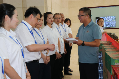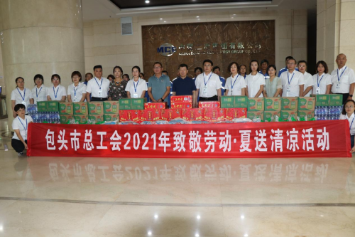 7月15日,包頭市總工會黨組成員、副主席王文海,包頭市建材工會主席翟海燕到中國二冶冶金分公司開展“致敬職工,夏送清涼”暑期高溫慰問活動,向戰(zhàn)高溫,斗酷暑,辛勤工作在一線的中國二冶職工送來防暑降溫用品,同時也送來市總工會的關(guān)心和關(guān)懷。公司黨委副書記、副董事長、工會主席白峰陪同慰問。