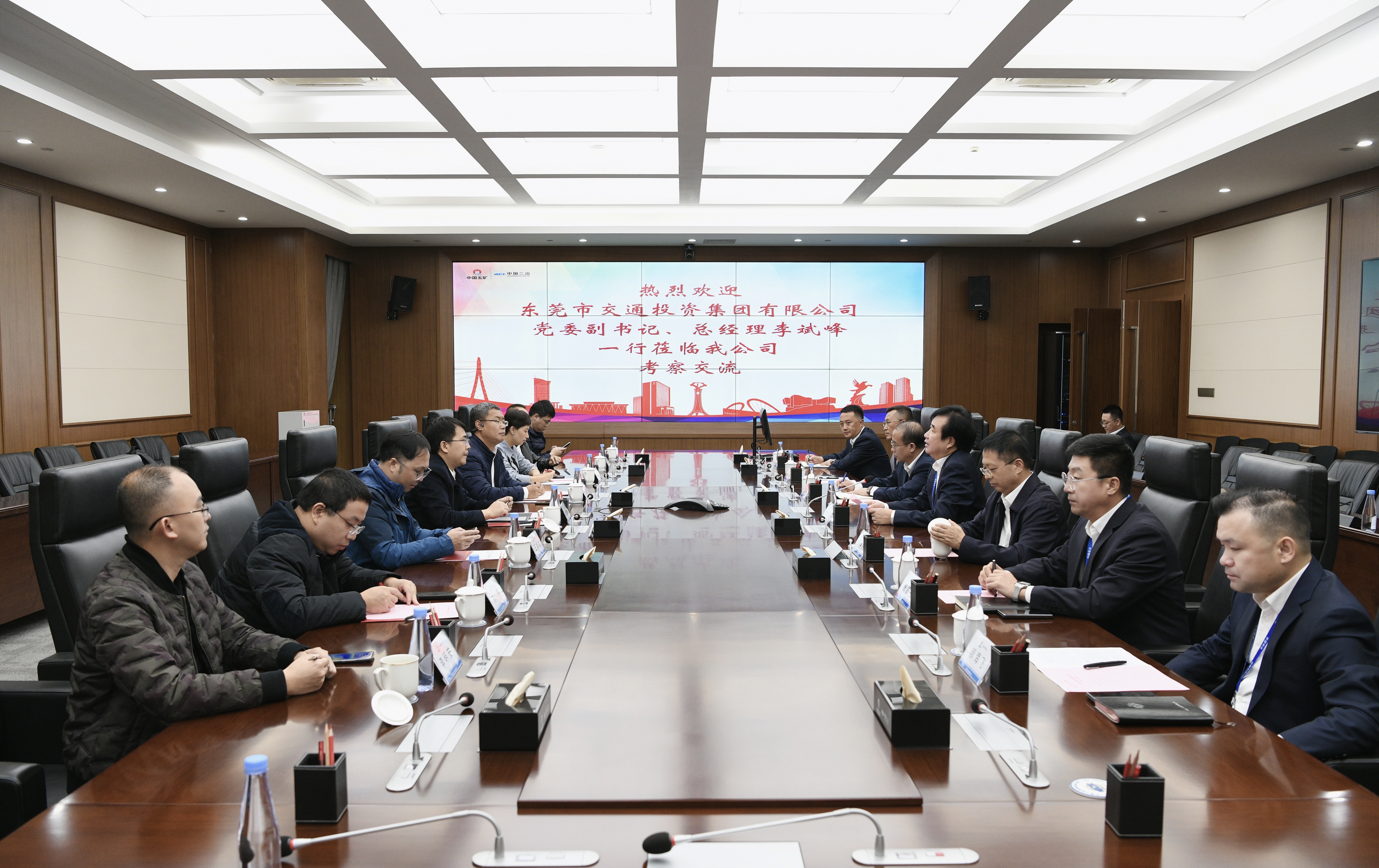 10月22日,東莞市交通投資集團黨委副書記、總經(jīng)理李斌峰一行到中國二冶考察交流,中國二冶黨委書記、董事長徐永鋒,副總經(jīng)理周學(xué)民參加座談,雙方就加強務(wù)實合作進行深入交流。