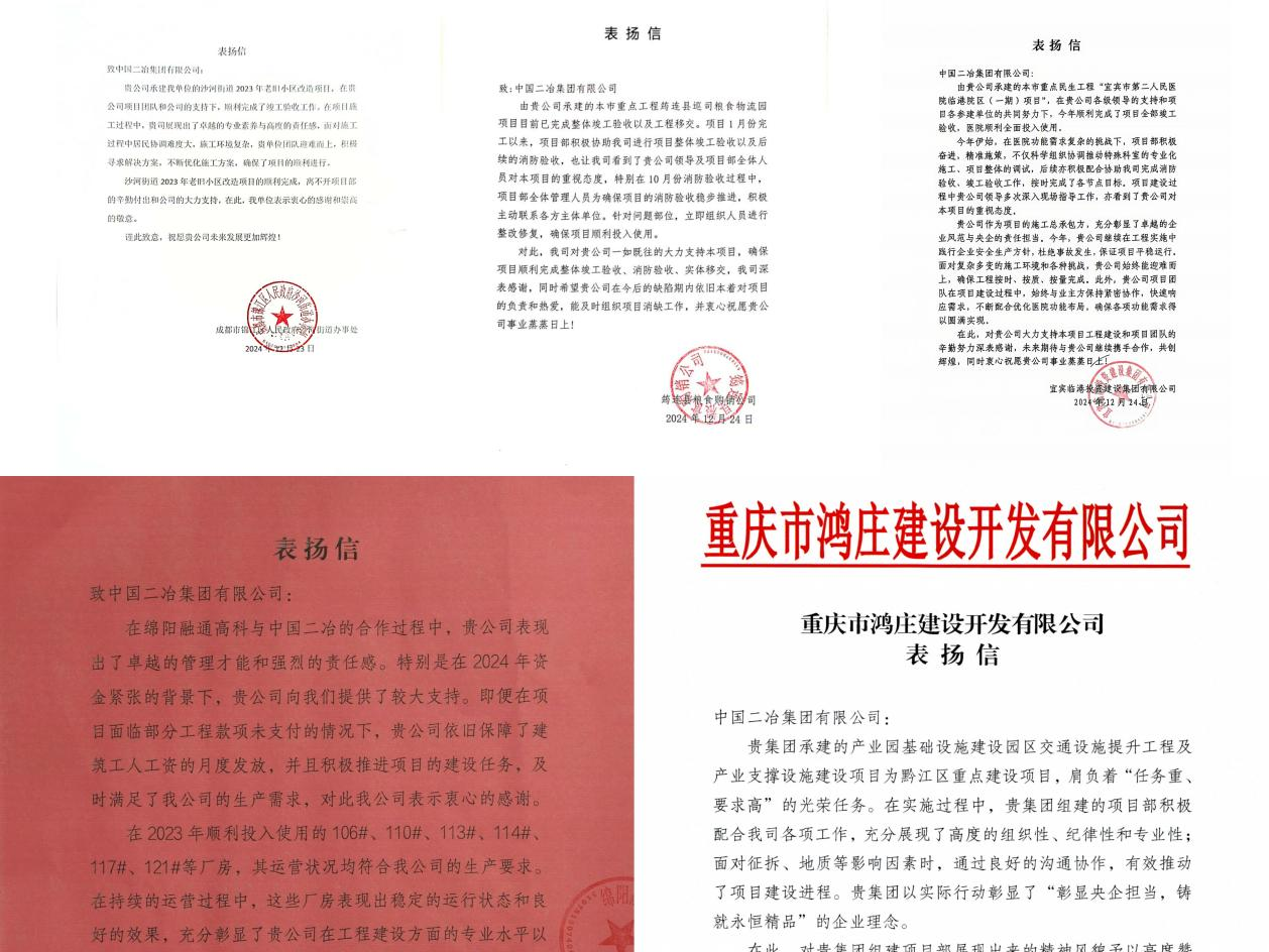 這一封封表揚信,不僅是對中國二冶優(yōu)質(zhì)高效地推進(jìn)各項工作的充分肯定,更是對項目管理團(tuán)隊優(yōu)良作風(fēng)的認(rèn)可。接下來,各項目管理團(tuán)隊將持續(xù)用行動踐行初心使命,切實做好各項目后續(xù)工作,為地方經(jīng)濟(jì)貢獻(xiàn)央企力量。