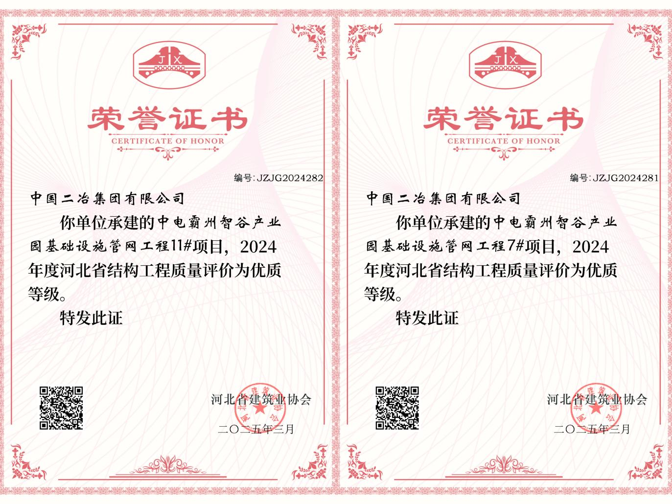 近日,中國(guó)二冶霸州中電智谷項(xiàng)目7#、11#樓獲評(píng)2024年度河北省優(yōu)質(zhì)結(jié)構(gòu)工程。