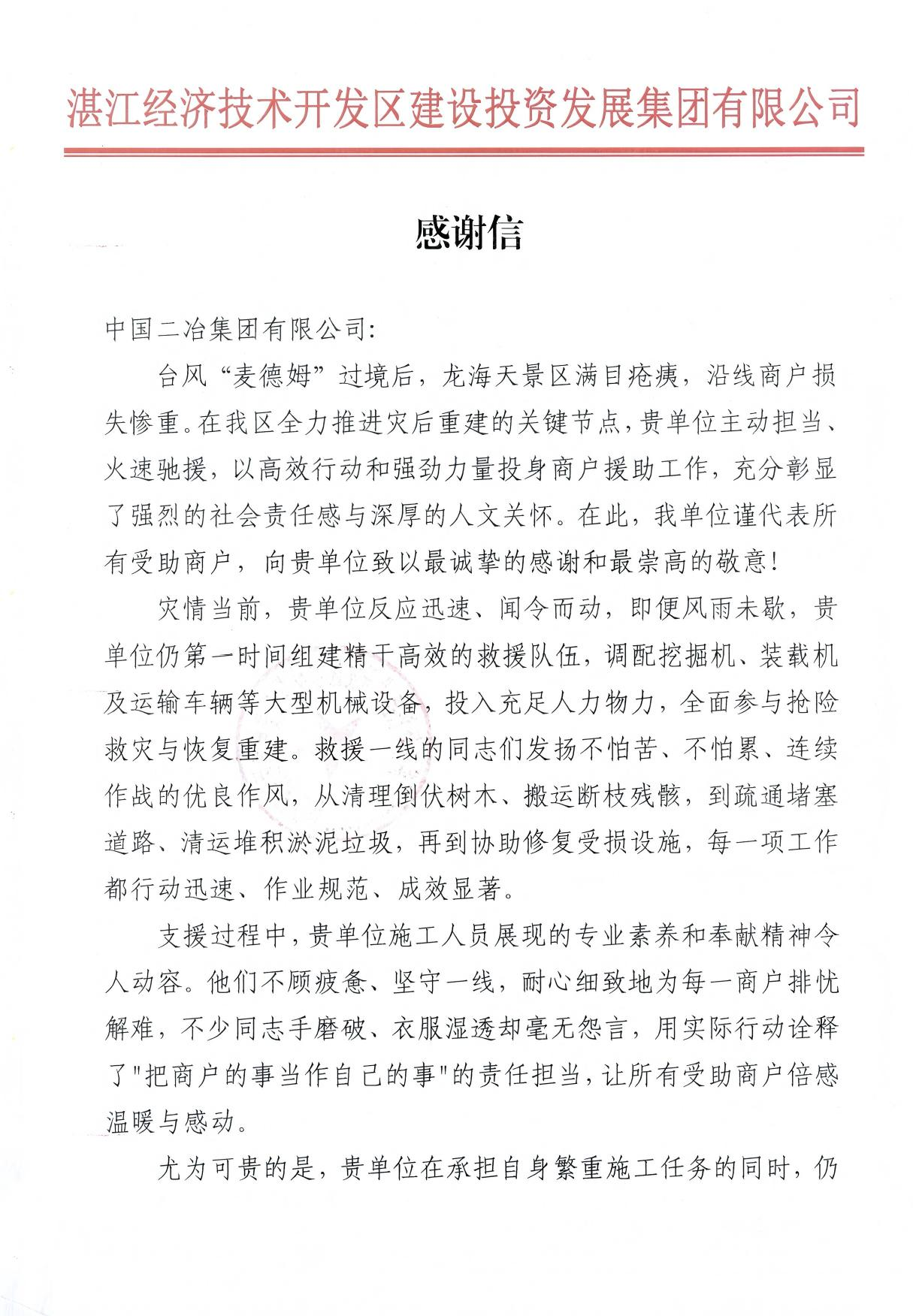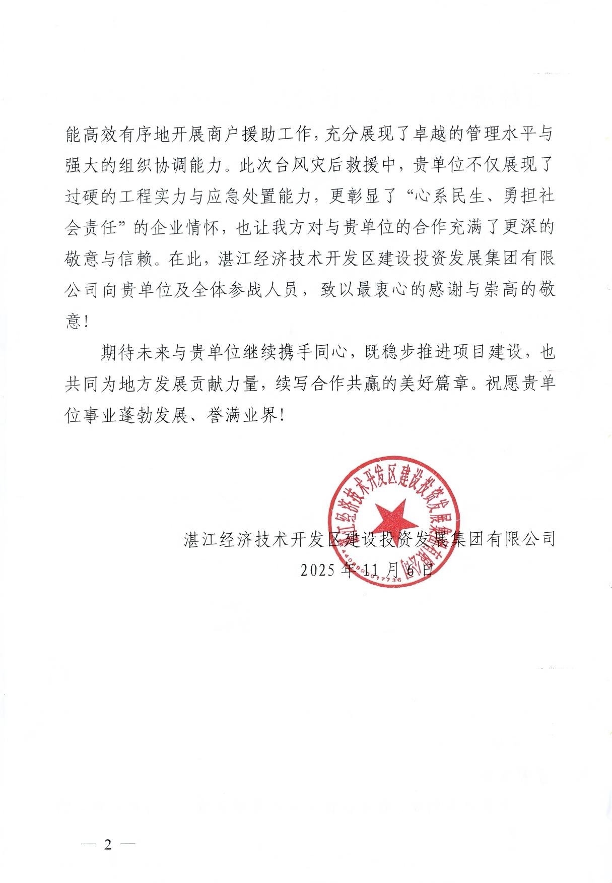 表?yè)P(yáng)信指出,臺(tái)風(fēng)“麥德姆”給龍海天景區(qū)及沿線商戶造成嚴(yán)重?fù)p失,災(zāi)后重建工作迫在眉睫。關(guān)鍵時(shí)刻,中國(guó)二冶主動(dòng)請(qǐng)纓、迅速響應(yīng),在風(fēng)雨未歇之際組建精干救援隊(duì)伍,調(diào)配挖掘機(jī)、裝載機(jī)等大型機(jī)械設(shè)備,投入充足人力全力參與搶險(xiǎn)。救援人員發(fā)揚(yáng)連續(xù)作戰(zhàn)的優(yōu)良作風(fēng),高效開(kāi)展倒伏樹(shù)木清理、斷枝搬運(yùn)、道路疏通、淤泥清運(yùn)及受損設(shè)施修復(fù)等工作,作業(yè)規(guī)范、成效顯著。施工人員不顧疲憊與辛勞,耐心為商戶排憂解難,部分人員手磨破、衣服濕透仍毫無(wú)怨言,用實(shí)際行動(dòng)詮釋了“把商戶的事當(dāng)作自己的事”的責(zé)任擔(dān)當(dāng),讓受助商戶倍感溫暖。表?yè)P(yáng)信特別提到,中國(guó)二冶在承擔(dān)自身繁重施工任務(wù)的同時(shí),仍能高效有序推進(jìn)援助工作,充分展現(xiàn)了卓越的管理水平、強(qiáng)大的組織協(xié)調(diào)能力及過(guò)硬的應(yīng)急處置實(shí)力。